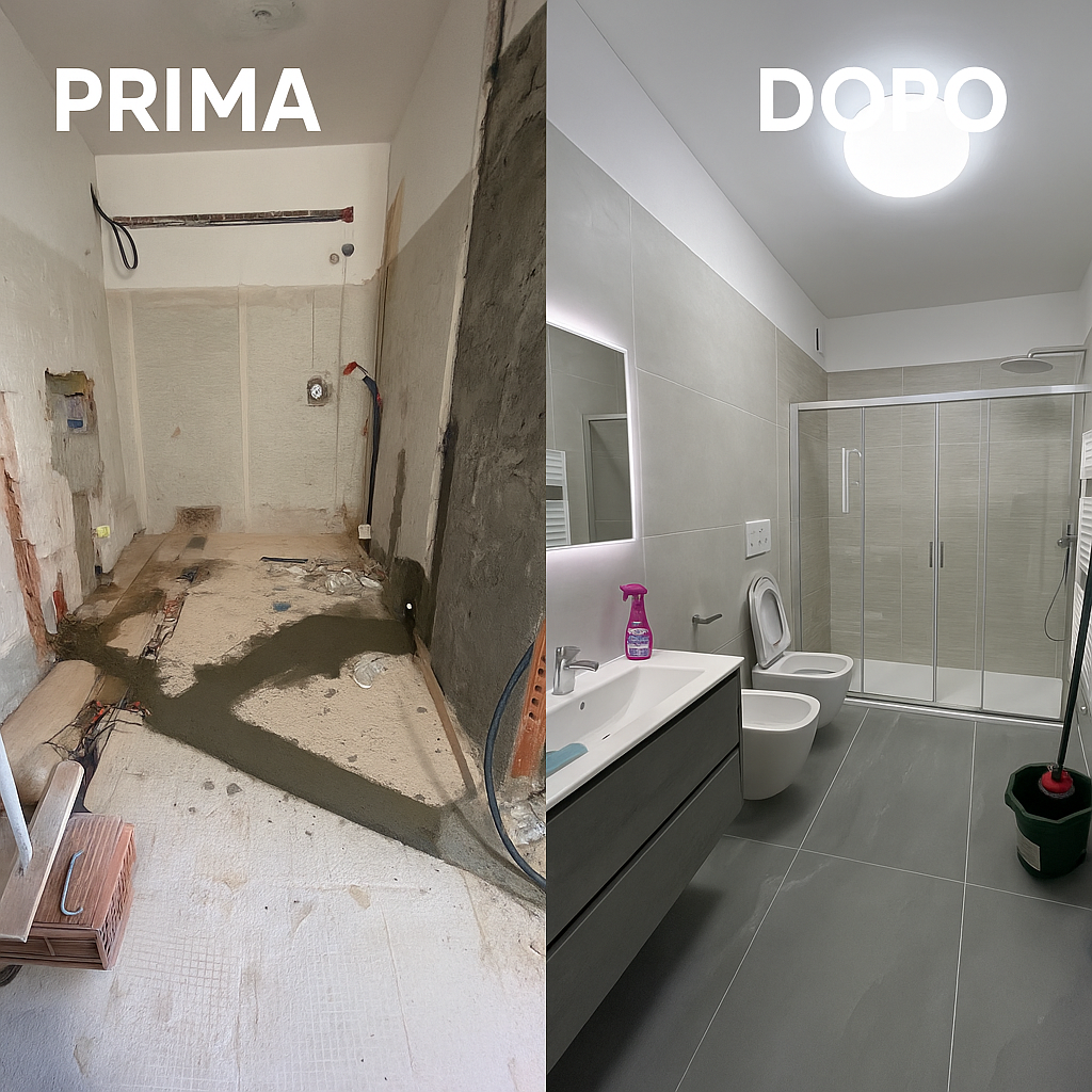 - Rifacimento bagni e cucine (impianti, piastrellature, sanitari)